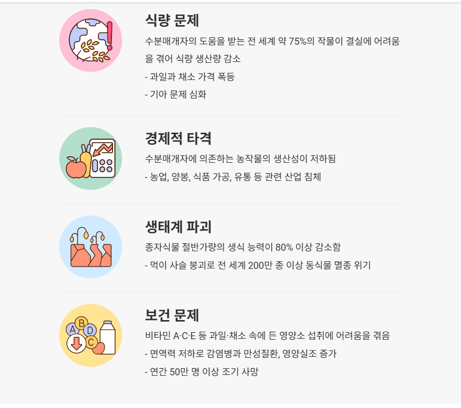 수분매개자 감소는 인류의 지속 가능한 삶에도 영향을 미칩니다.😭😭😭