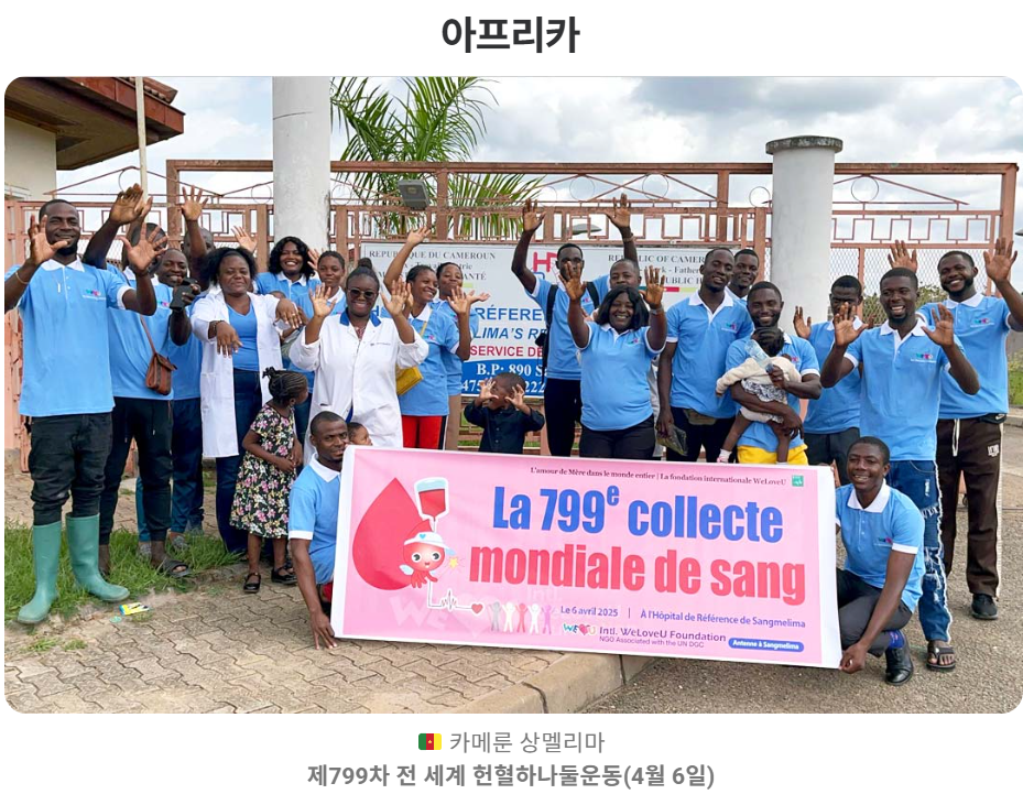 위러브유는 자발적 무상 헌혈 캠페인을 전 세계에서 전개해