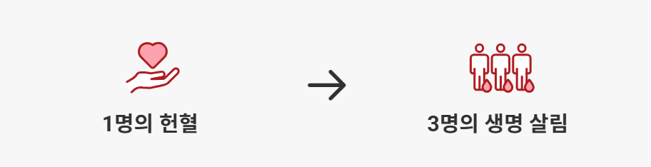 헌혈로 혈액을 나누면 세 명의 생명을 살릴 수 있기 때문입니다.